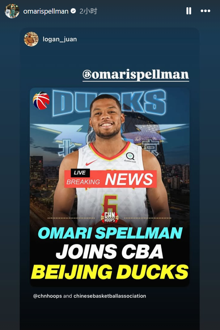 雷速体育9月3日讯 前勇士内线球员斯佩尔曼在个人社媒自宣加盟北京男篮,他在个人社媒转发了相关报道,并配上了一个鸭子(北京男篮吉祥物)的表情。