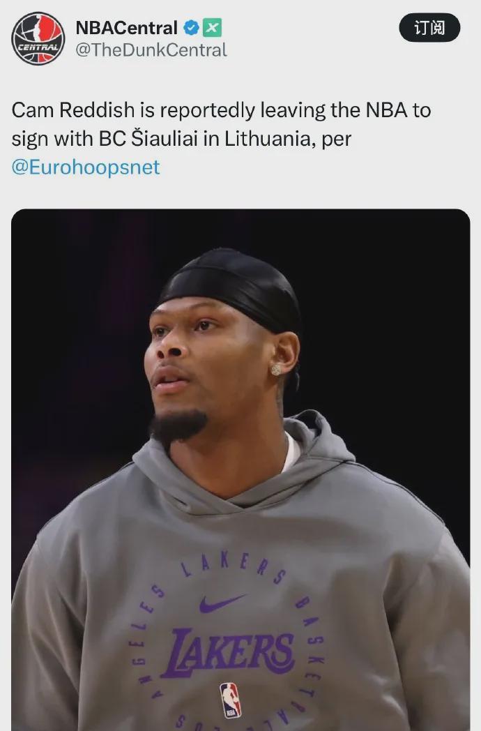 最新消息报道,雷迪什将与立陶宛的希奥利艾BC俱乐部签约开启海外联赛生涯,祝好运!