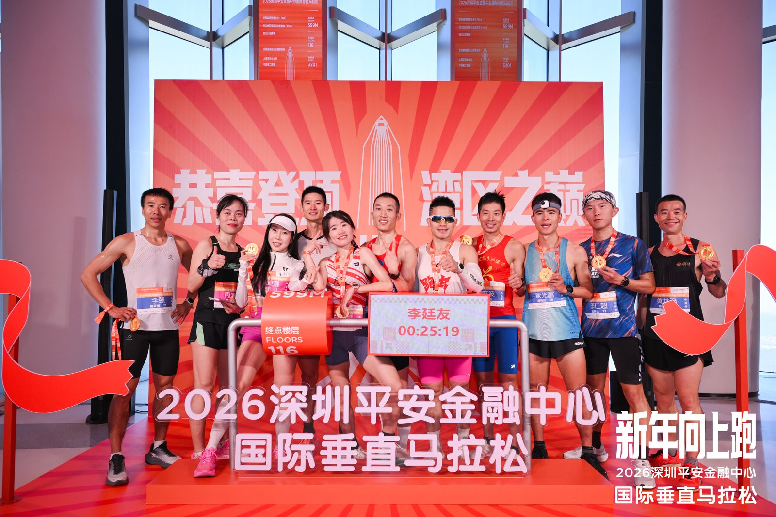 3201级台阶、1500名选手、599米天际线!1月10日,“2026国际垂直马拉松”在粤港澳大湾区第一高楼深圳平安金融中心鸣枪开赛。本次赛事由深圳市文化广电旅游体育局、深圳市福田区人民政府支持,吸引了世界各地约1500名参赛选手参加,包括多名世界高塔垂直马拉松冠军选手,以及国内外的专业垂直马拉松运动员和爱好者。