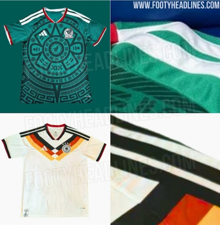 根据德国和墨西哥2026年世界杯主场球衣的两张泄露图片,可以确认阿迪达斯将采用新的超大三道杠设计。这一设计将专用于2026年世界杯的主场球衣,而客场球衣将继续使用传统的三道杠。